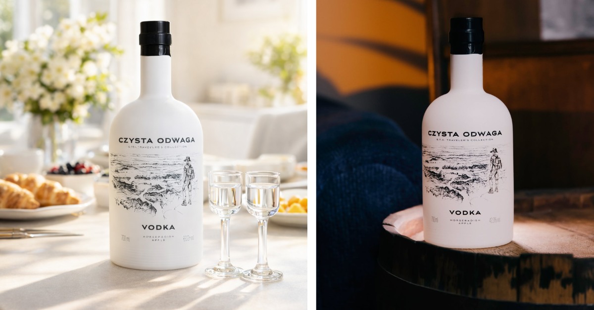 W przypadku Czystej Odwagi znaczenie ma jednak nie tylko smak. Ta wódka niesie ze sobą także historię, którą warto opowiedzieć przy świątecznym stole. Na matowej, białej butelce widnieje postać S.T.O. – twórcy marki przedstawionego w krajobrazie Doliny Noteci, miejsca, które jest dla niego domem i źródłem inspiracji. To subtelne przypomnienie, że za produktem stoją konkretni ludzie, emocje i przywiązanie do miejsca.