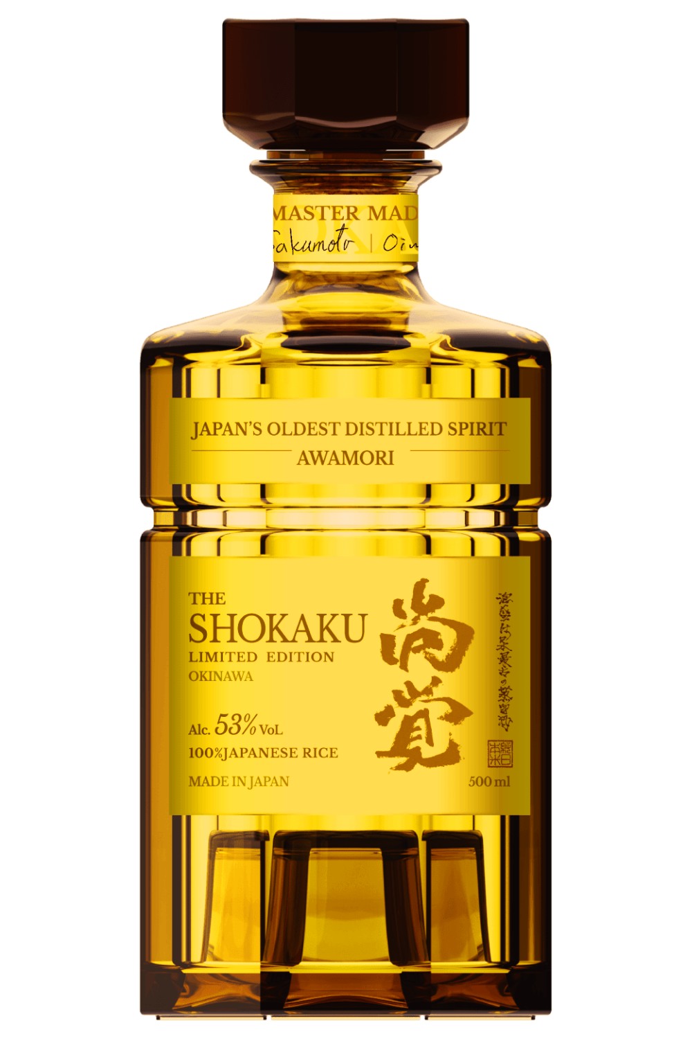 Awamori z destylarni Zuisen, jednego z najstarszych i najbardziej tradycyjnych producentów na Okinawie. Założona w 1887 roku w Shuri, Zuisen specjalizuje się w tradycyjnych technikach i leżakowaniu, a linia Shokaku to najdroższe i najlepsze z ich produktów. Do fermentacji wykorzystano lokalny długoziarnisty ryż. Proces jednokrotnej destylacji jest przerywany na wczesnym etapie, przy mocy 53% i z taką mocą trafia do butelek. Aromat mąki, śliwki, koji, gotowanego ryżu, soi, słodu, ciemnego ciężkiego porterowego piwa. W smaku bardzo dużo umami: sos sojowy, nuty grzybowe, słód i pleśń. W finiszu słodowa słodycz i słoność sosu sojowego, sos śliwkowy, rokitnik, kwaskowe jabłka, karmel, kakao.