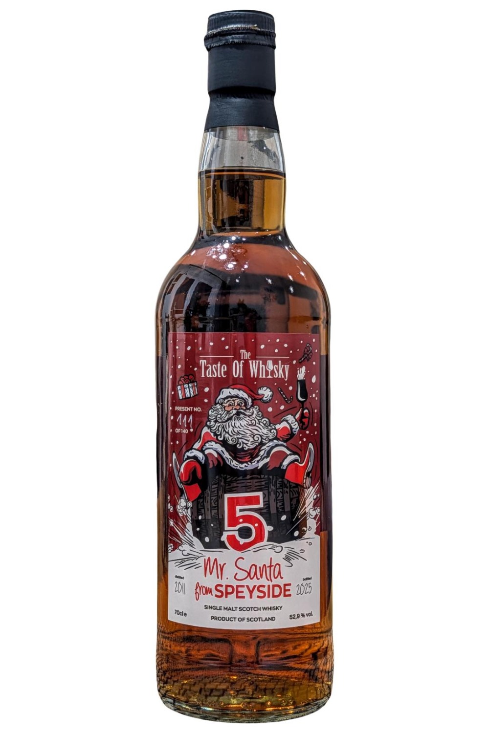 Piąta edycja świątecznej whisky zabutelkowanej przez The Taste of Whisky. 140 butelek z beczki po sherry oloroso, a potem w beczce refill-bourbon, destylacja 2011, butelkowanie 2025. Aromat mocno naznaczony sherry – rodzynki, śliwki suszone, włoskie orzechy, masło orzechowe, fistaszki. W smaku lekka słoność, sporo słodu, lekki pieprz, ziele angielskie, gałka muszkatołowa, eukaliptus. W finiszu słoność, solone orzeszki ziemne, słona lukrecja, słony chleb, mięta.